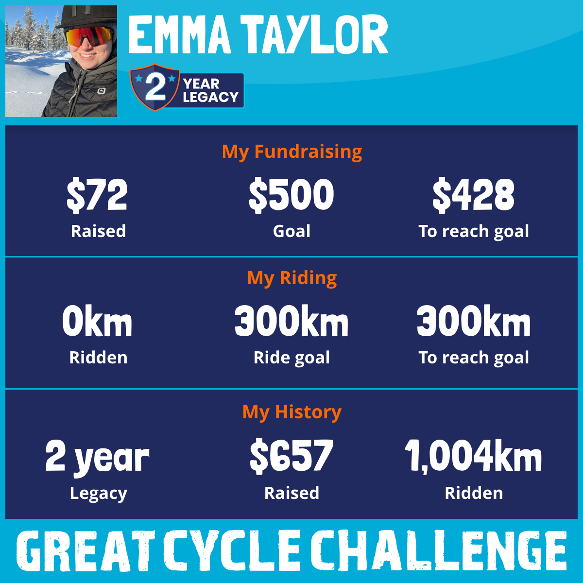 1,004 km Ridden$585 Raised2019