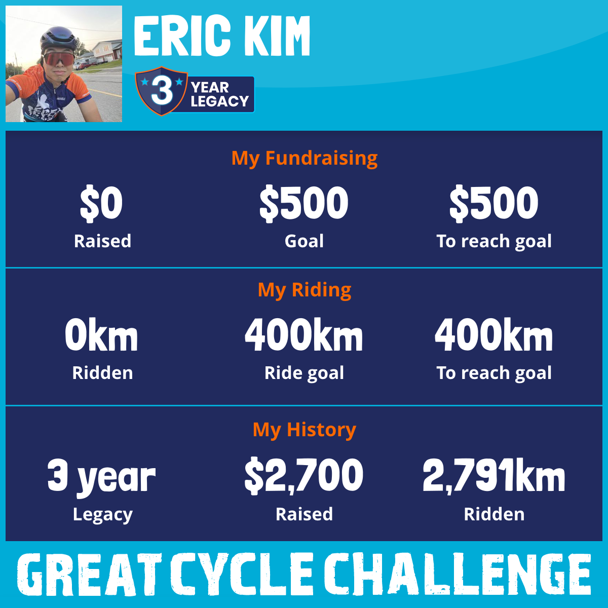 1,168 km Ridden$1,241 Raised2023