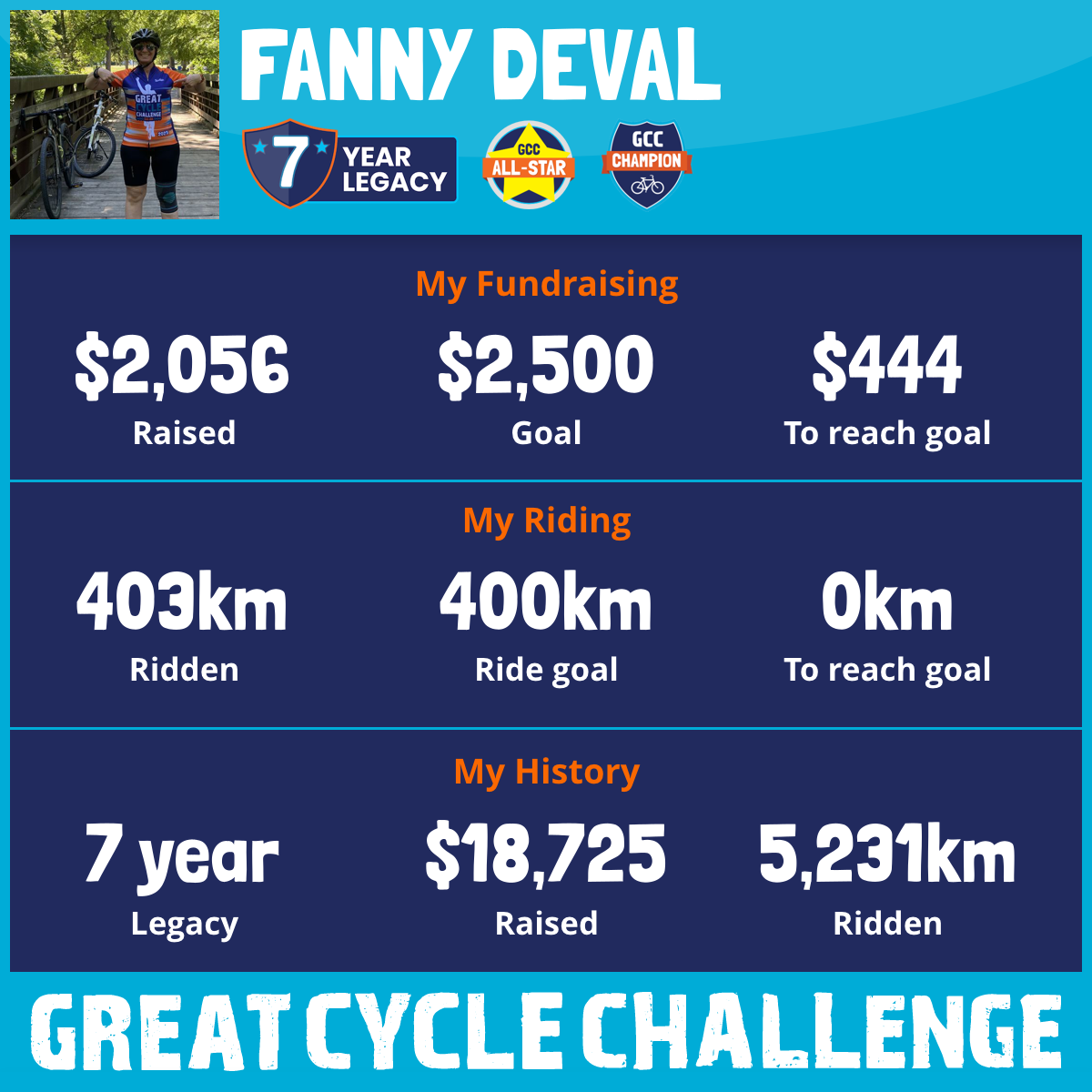 From 2017 to 2022 I rode 4,829km and raised $16,668 to give kids fighting cancer a better life!