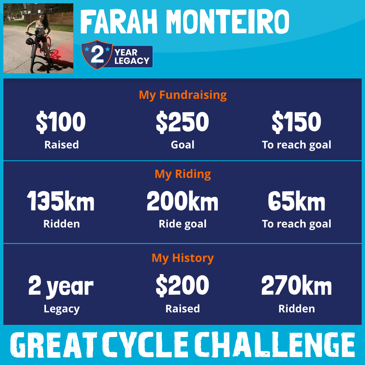 135 km Ridden$100 Raised2025