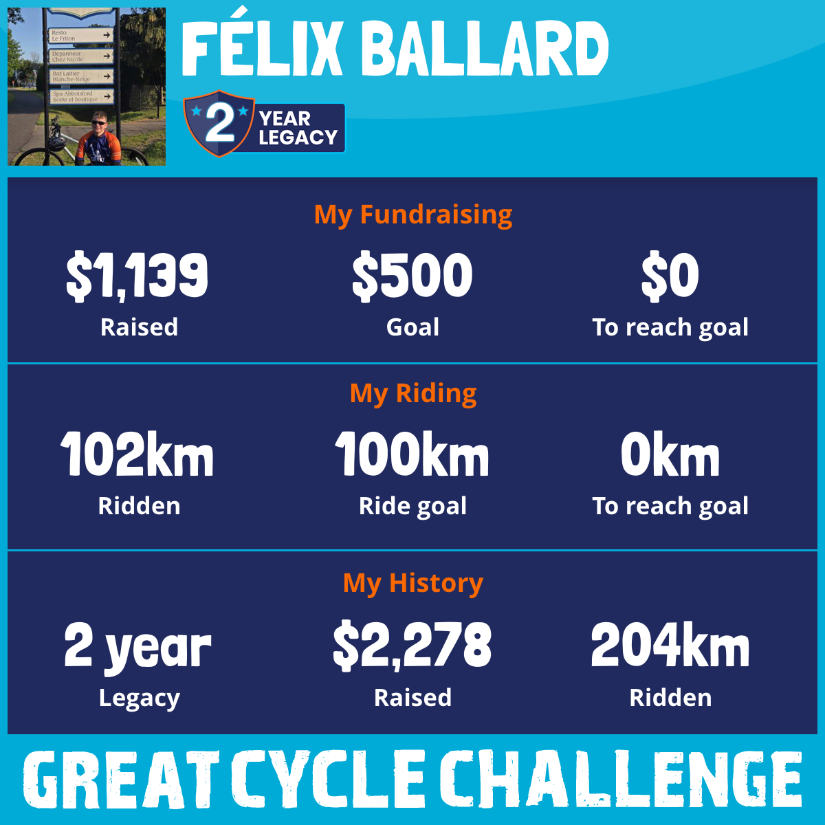 102 km Ridden$1,139 Raised2026