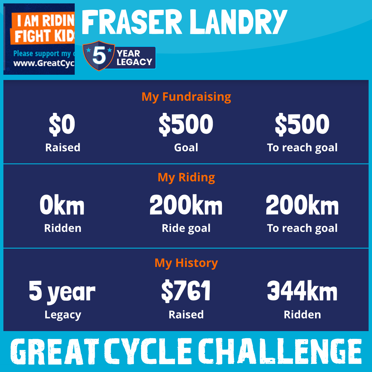 I am riding 200 km in memory of Ian Franklin Landry. Please sponsor me and support my challenge to fight kids' cancer and save little lives.