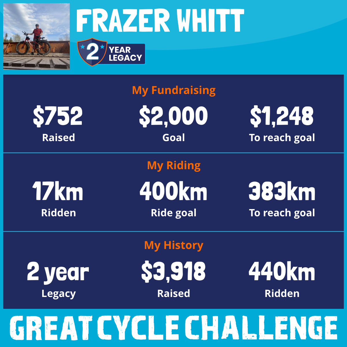 423 km Ridden$3,166 Raised2024