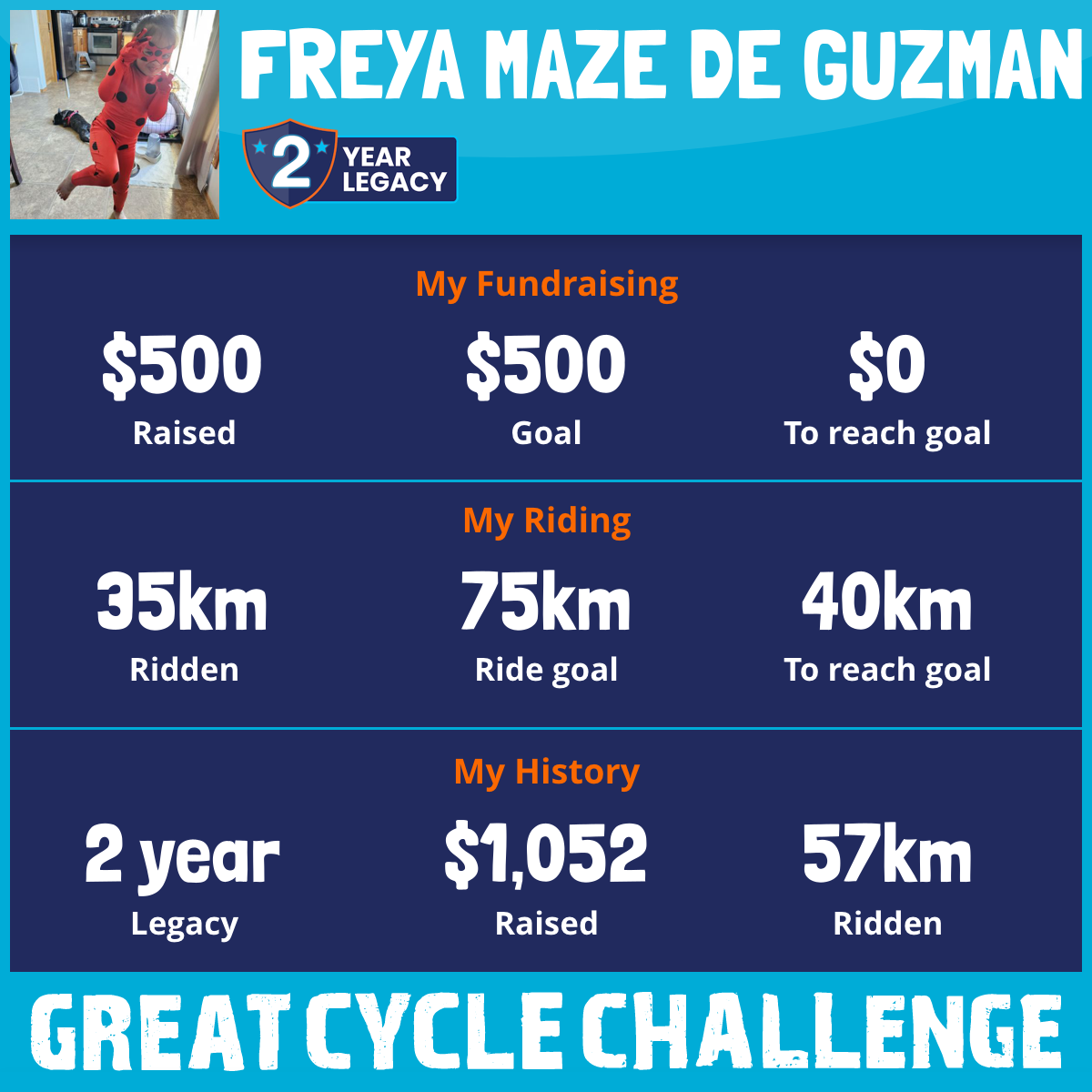57 km Ridden$500 Raised2026
