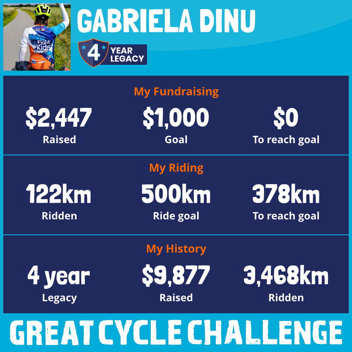 This August, I am taking part in the Great Cycle Challenge to fight kids' cancer!