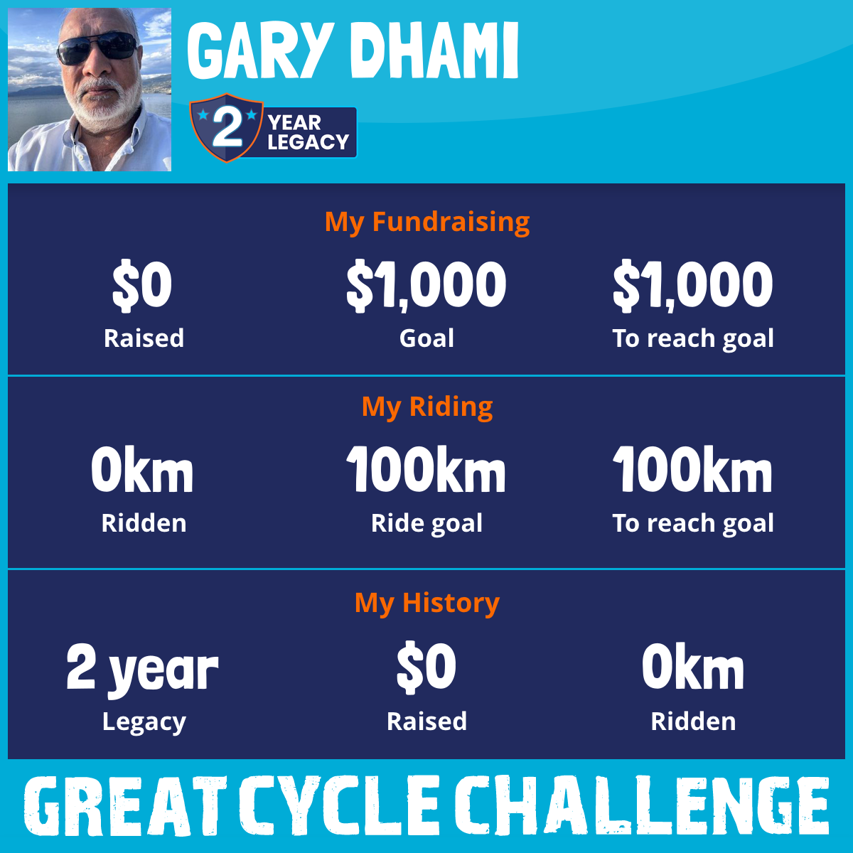 I am riding 100 km in memory of Gary. Please sponsor me and support my challenge to fight kids' cancer and save little lives.