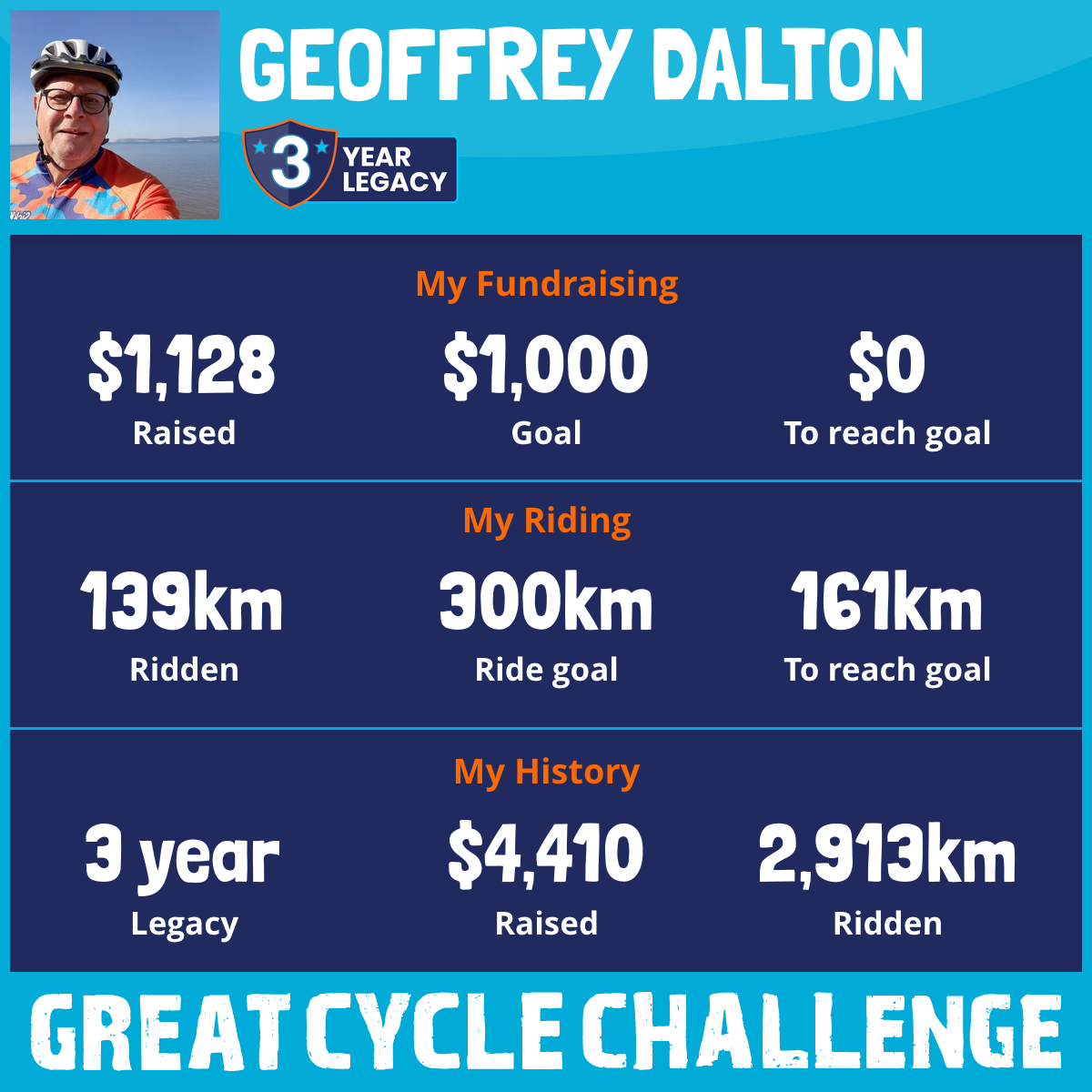 I am riding 300 km in memory of my friend, Ruth Yole & Barry Dohms. Please sponsor me and support my challenge to fight kids' cancer and save little lives.
