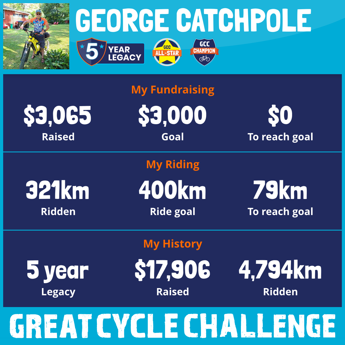 803 km Ridden$5,476 Raised2023