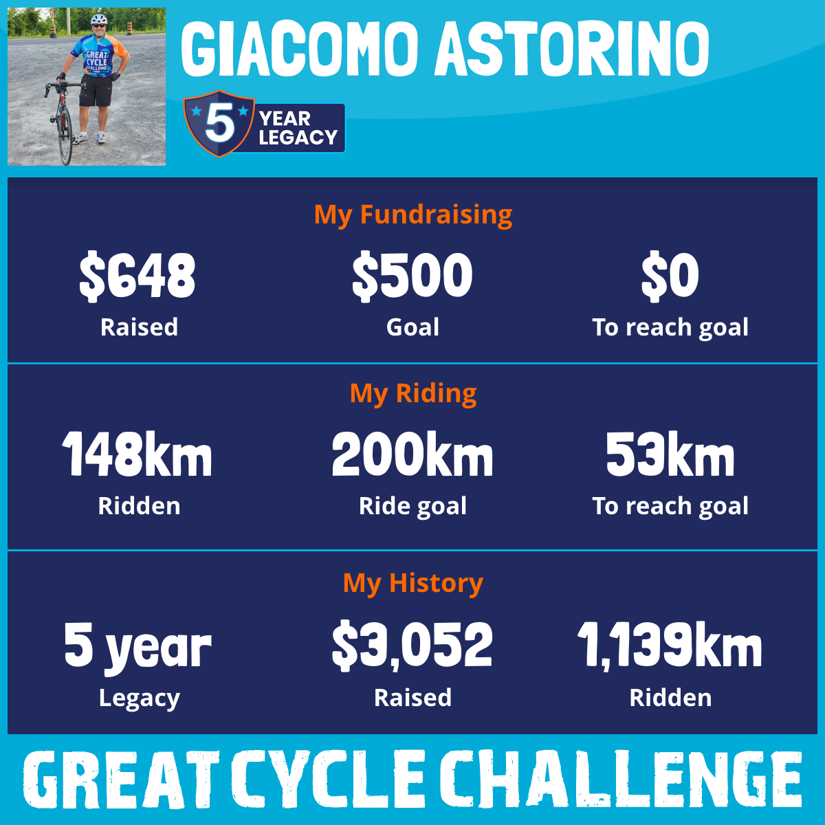213 km Ridden$720 Raised2026