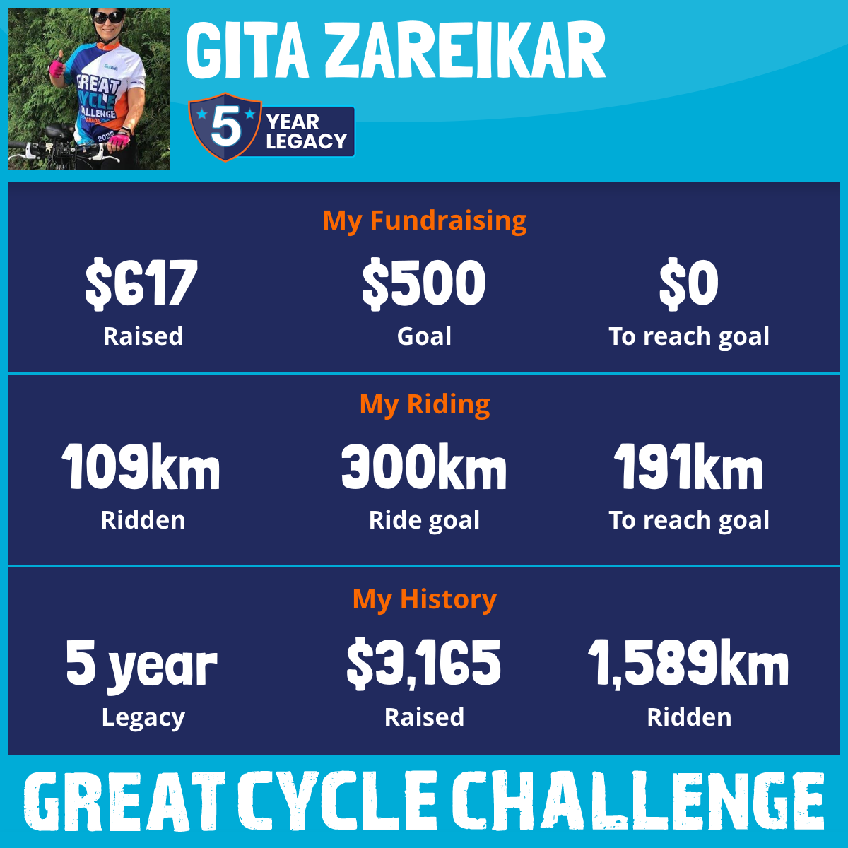 179 km Ridden$617 Raised2025