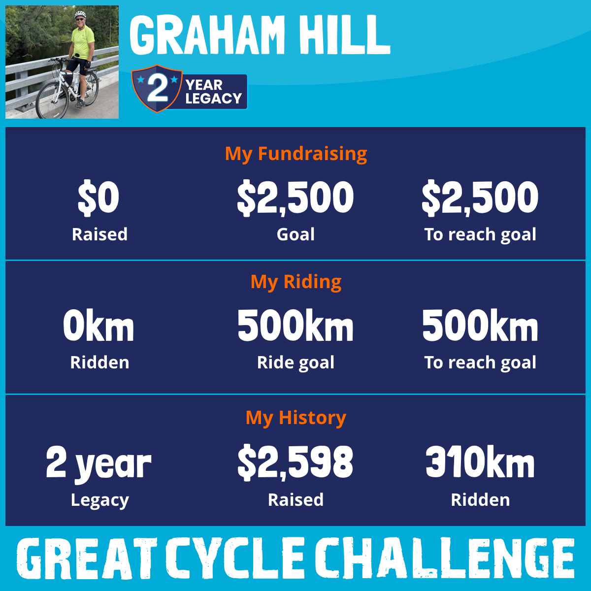 310 km Ridden$2,598 Raised2025