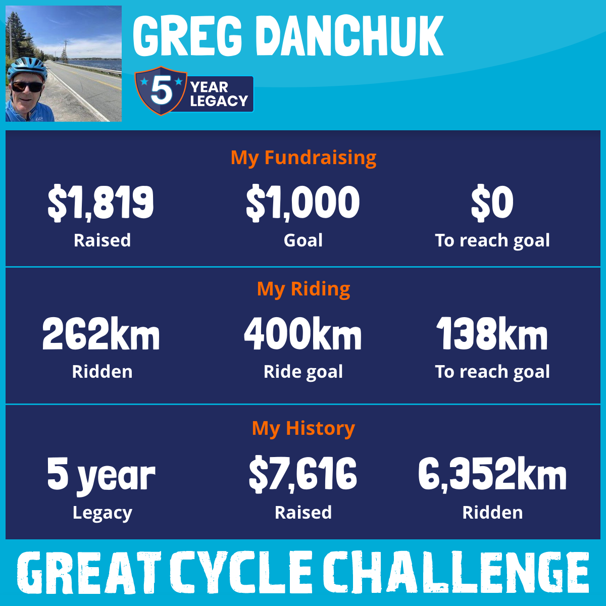 1,699 km Ridden$2,500 Raised2023