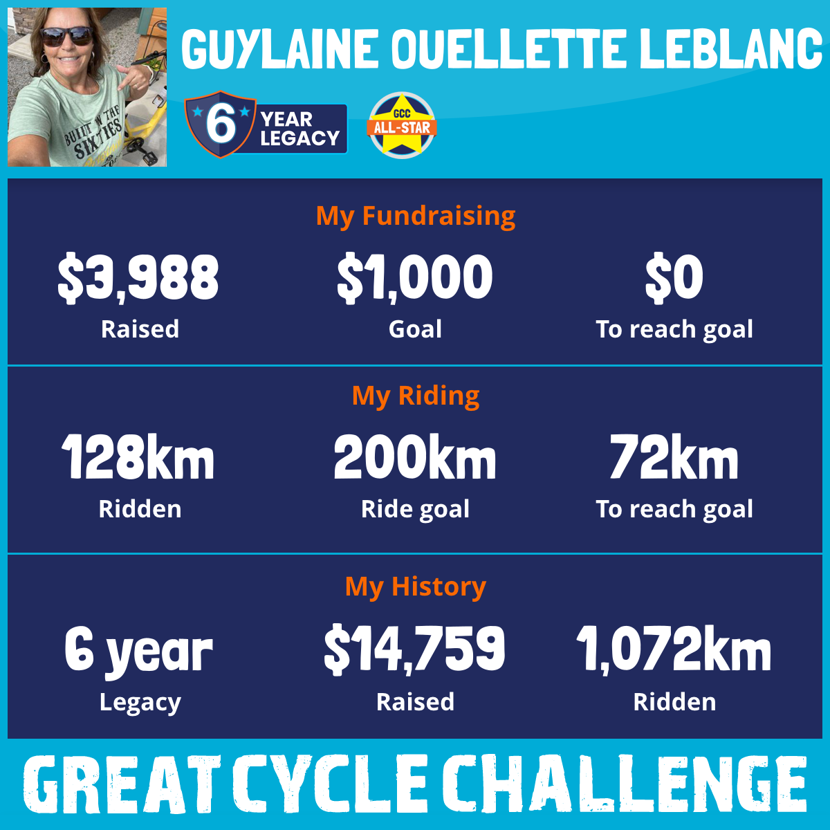 211 km Ridden$3,232 Raised2024