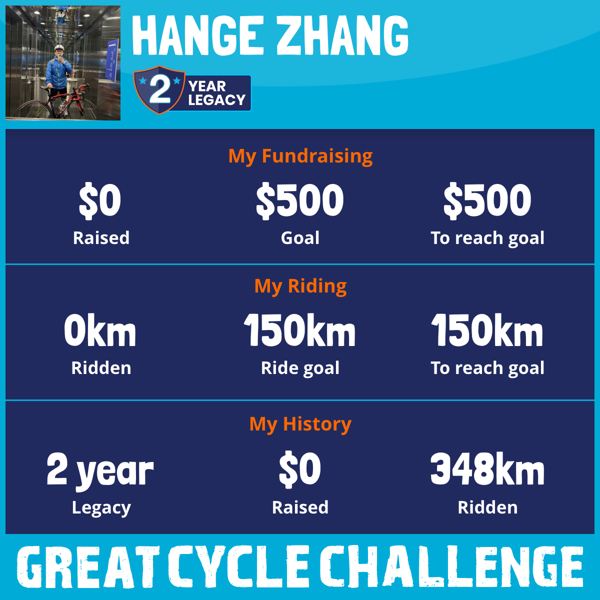 I am riding 150 km in memory of Guiqing. Please sponsor me and support my challenge to fight kids' cancer and save little lives.