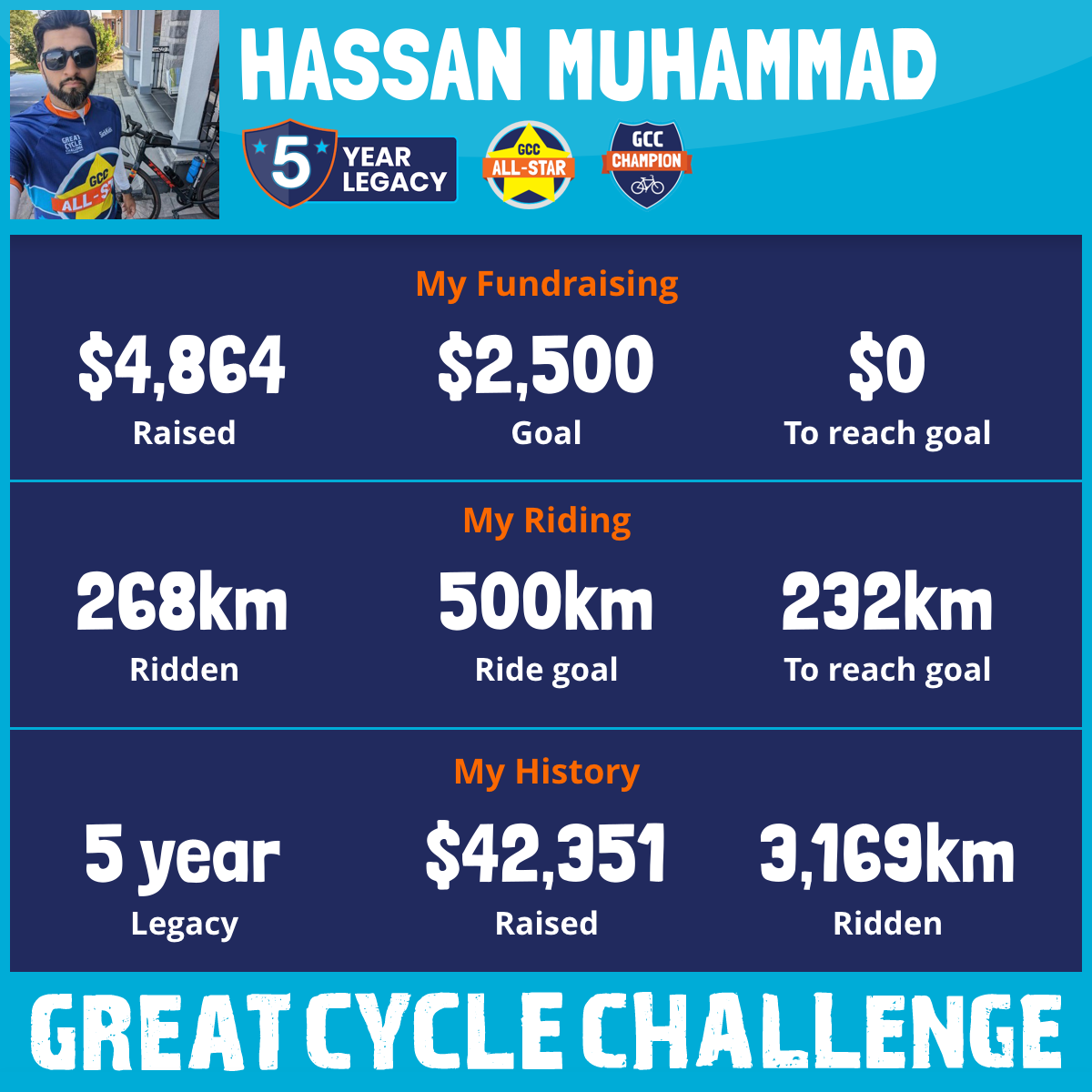I lost a close friends 2 yr old daughter to cancer in 2020, and have started riding with the GCC since then. We need to do more to keep children from fighting against this and being able to do what they are supposed to do, PLAY! This August, I am taking part in the Great Cycle Challenge to fight kids' cancer!