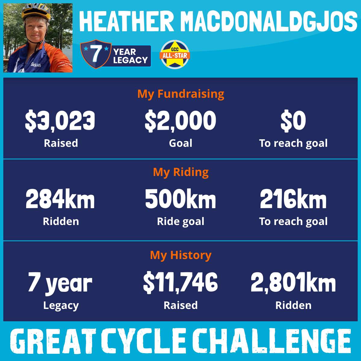 500 km Ridden$3,166 Raised2026