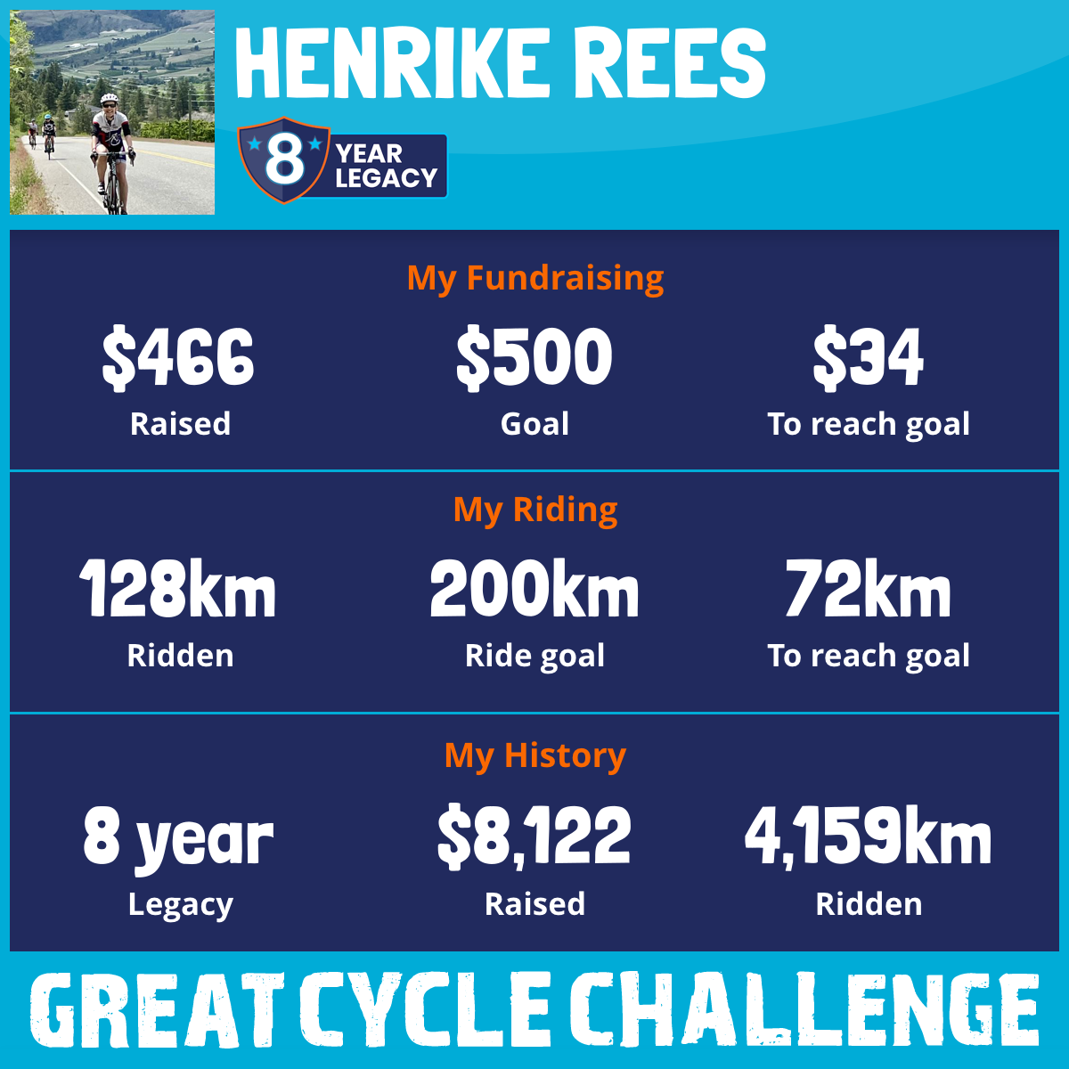 This August, I am yet again taking part in the Great Cycle Challenge to fight kids' cancer!