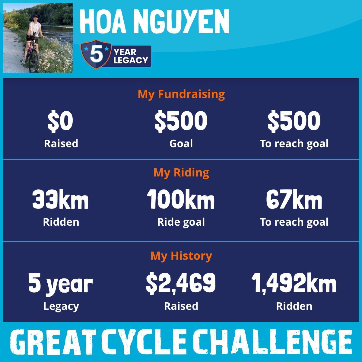 This August, I am taking part in the Great Cycle Challenge to fight kids' cancer!