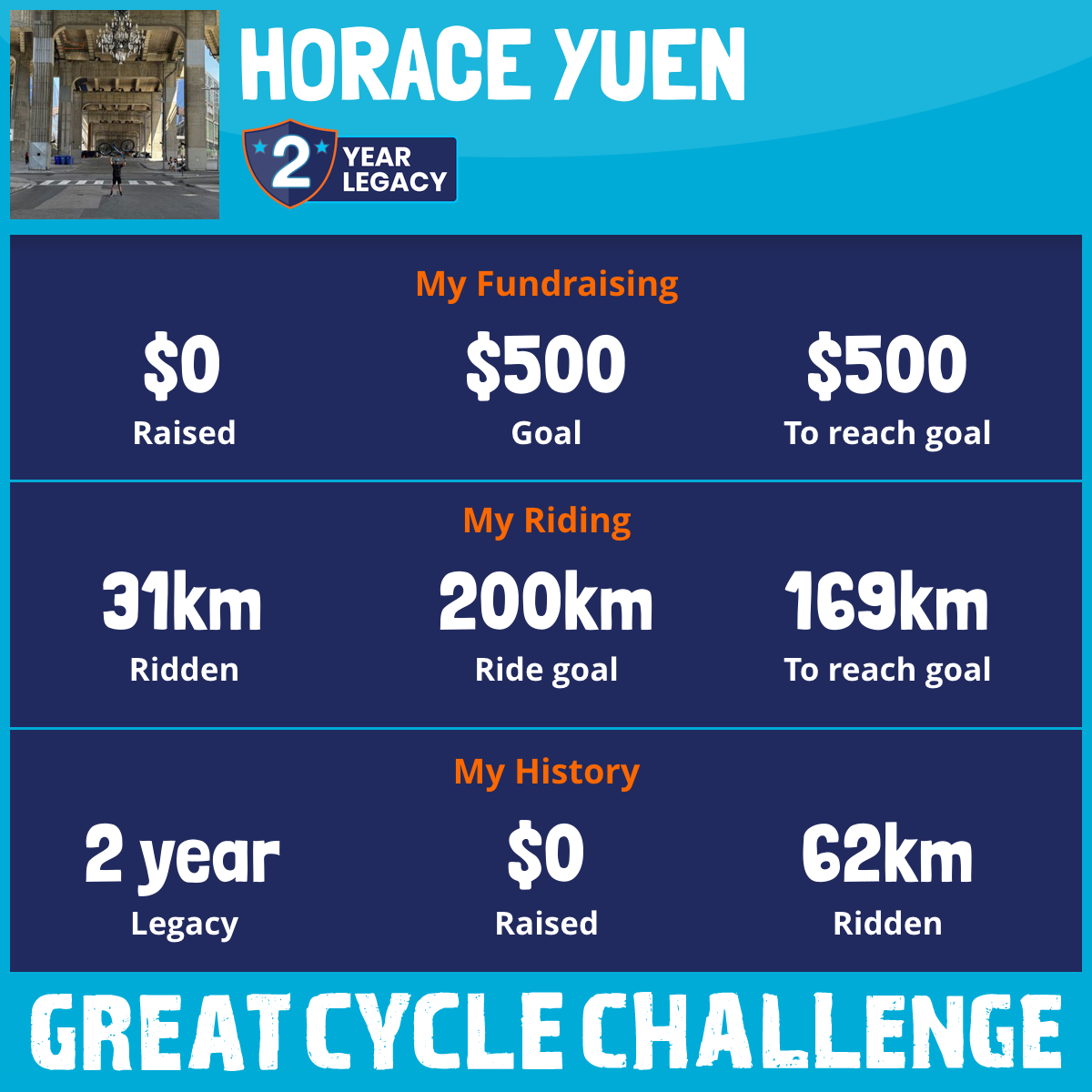 I am riding 200 km in memory of my grandfather, Brian Soo. Please sponsor me and support my challenge to fight kids' cancer and save little lives.
