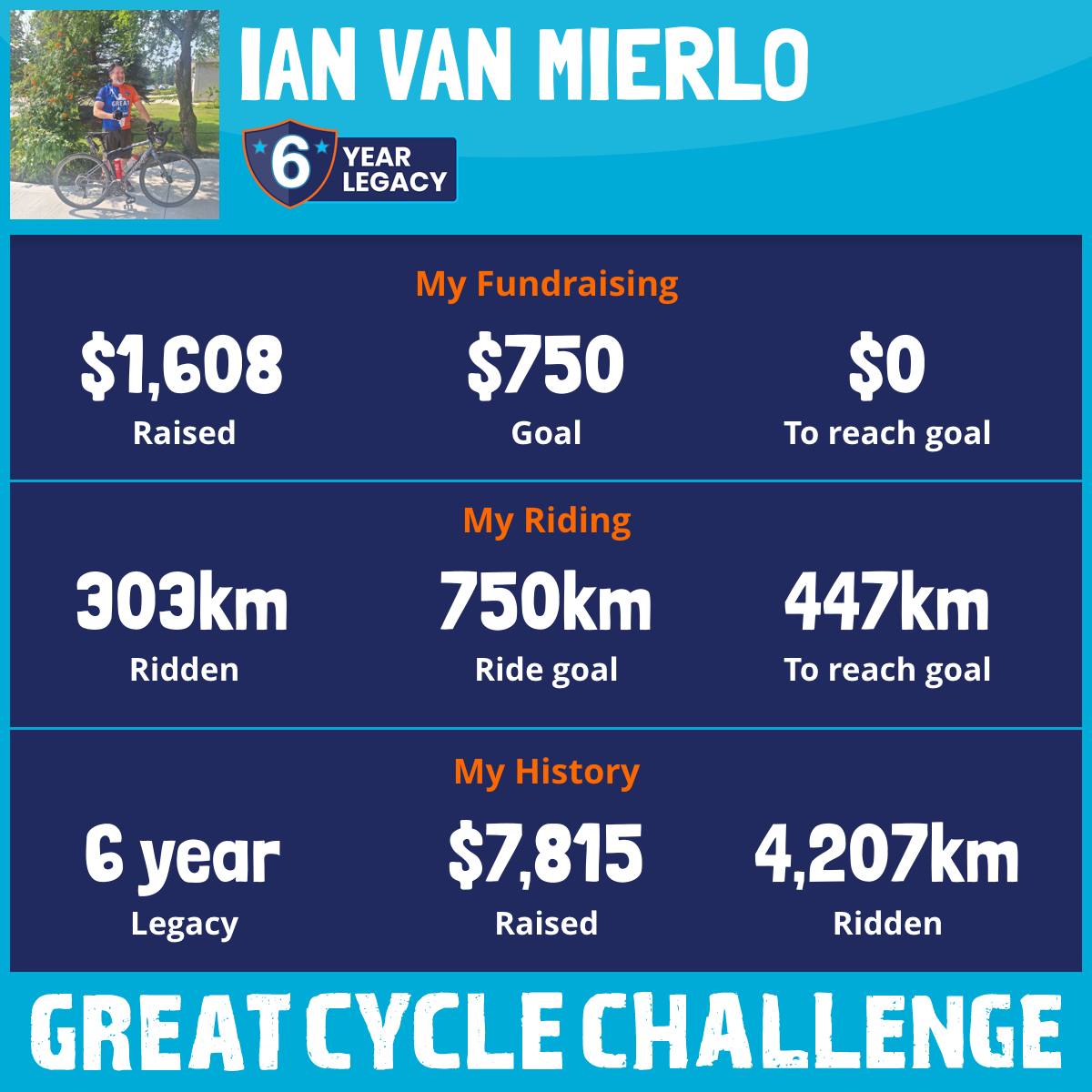 425 km Ridden$1,285 Raised2020