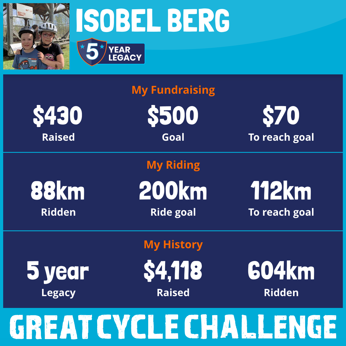 This August, I am taking part in the Great Cycle Challenge to fight kids' cancer!