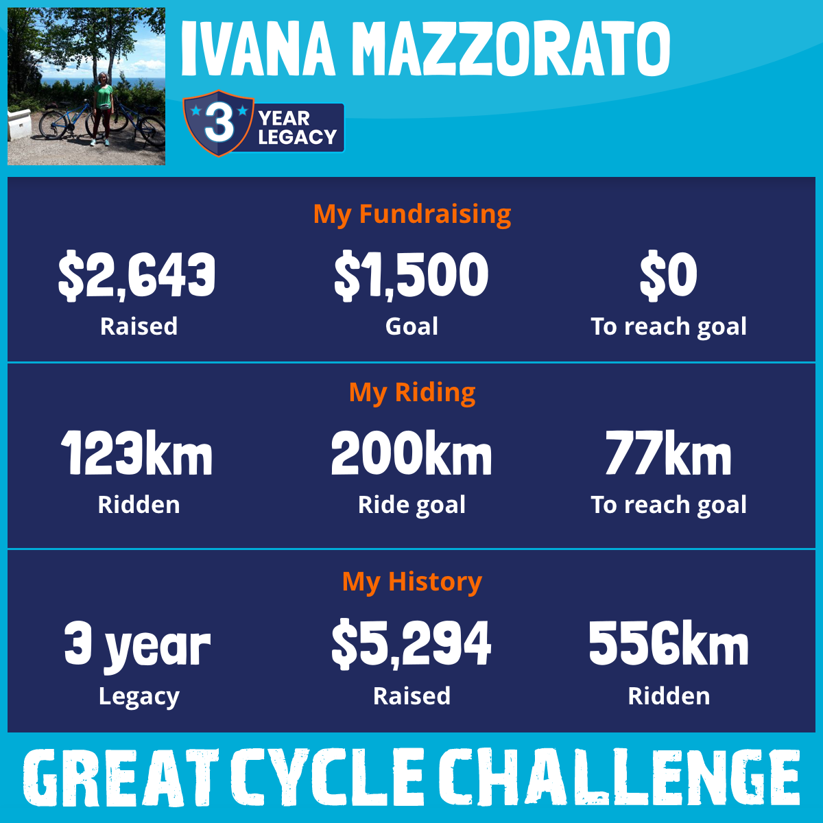 213 km Ridden$1,500 Raised2024
