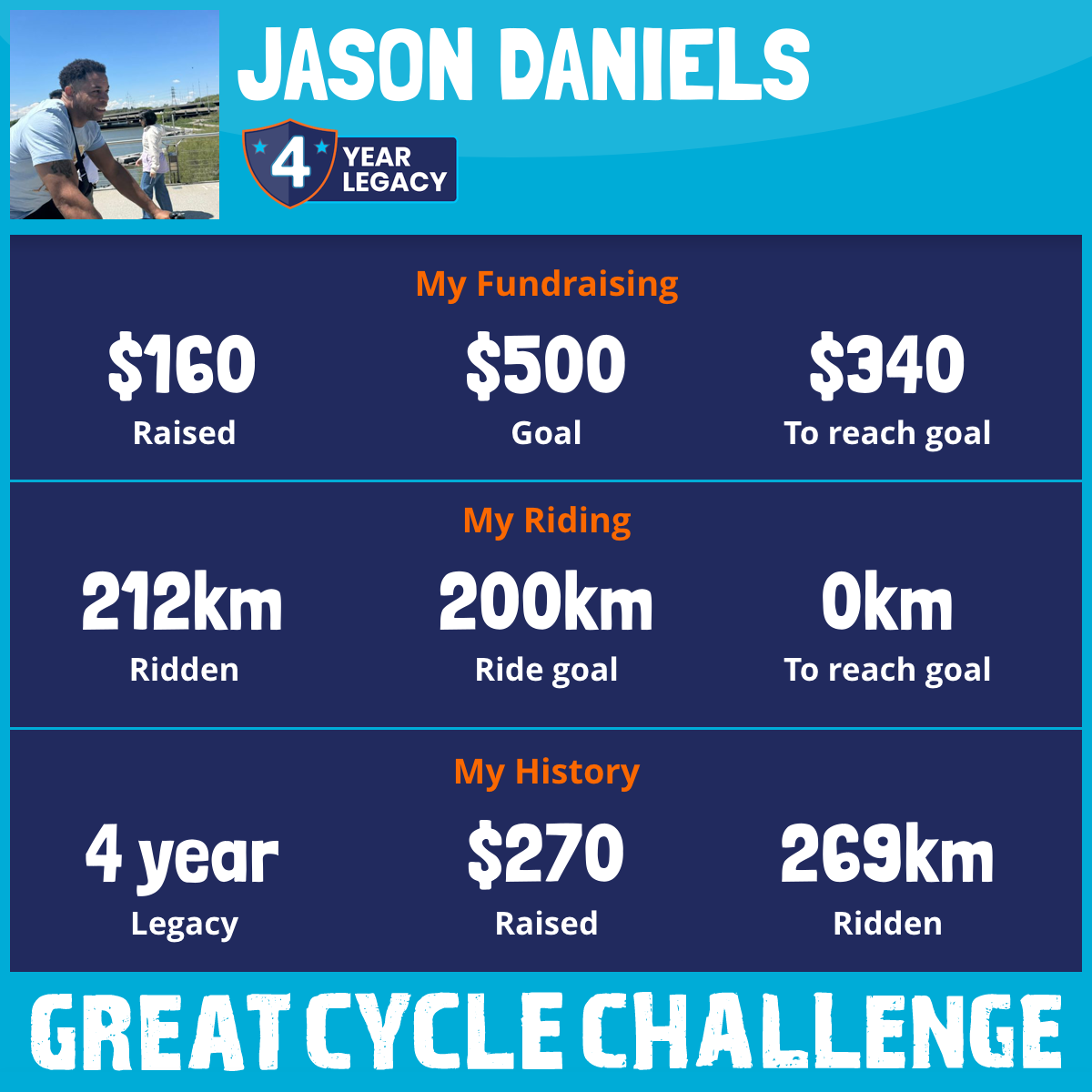 220 km Ridden$160 Raised2026