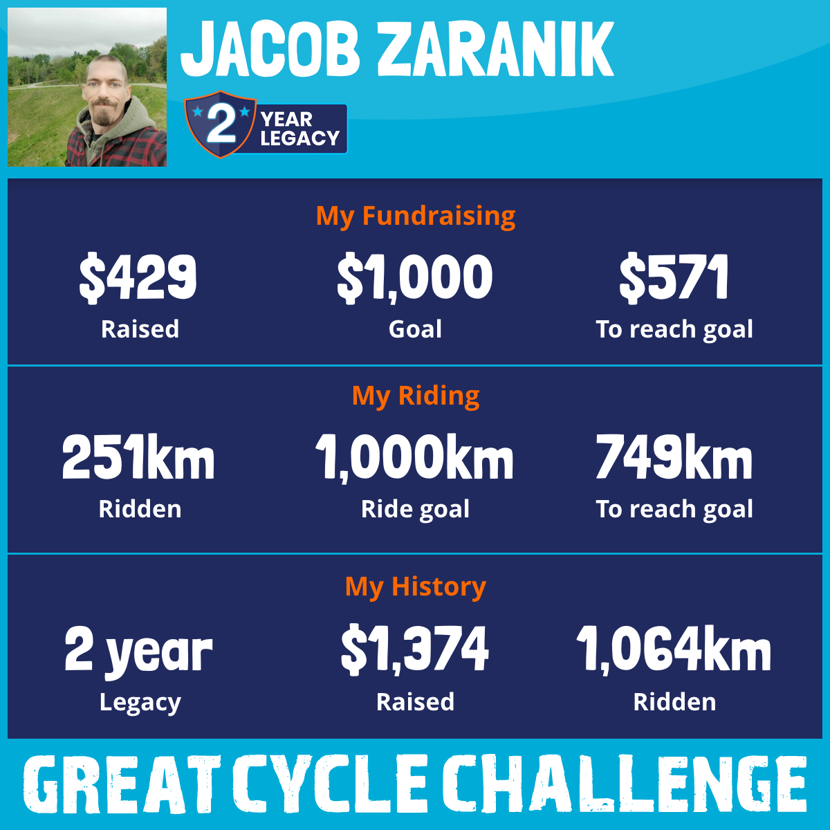 1,017 km Ridden$798 Raised2026