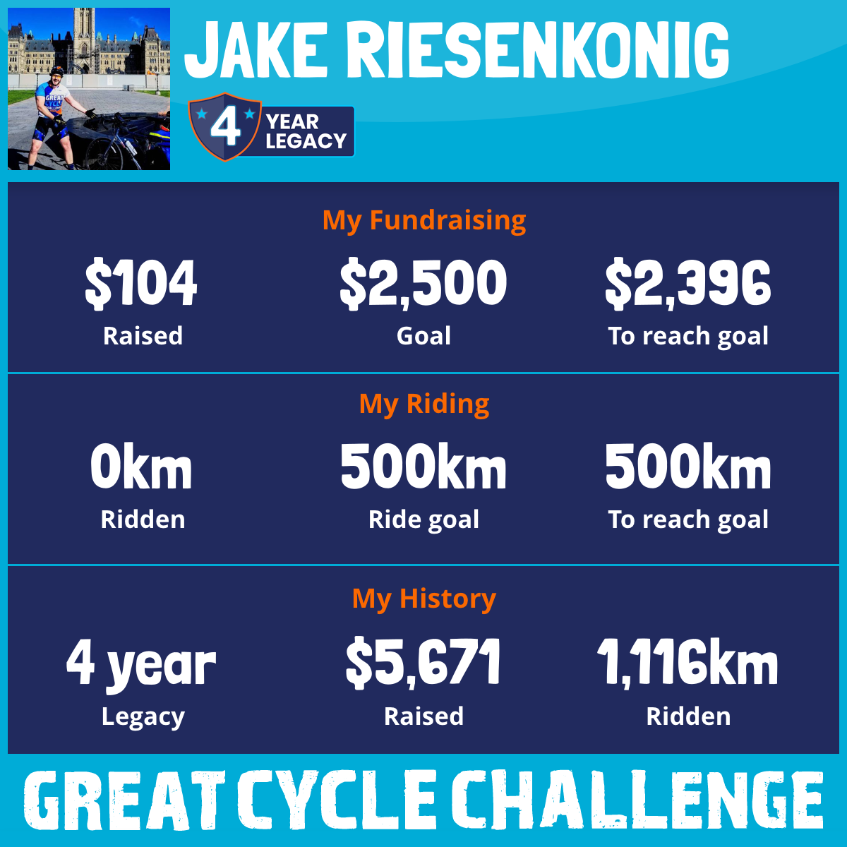 Back in 2020 I challenged myself to an extraordinary journey of riding from Waterloo to Ottawa, totaling over 700km in about a week's riding. I wasnt a professional cyclist then, and these days I have been far less now. Past couple years I was only able to ride marginally during the challenge, and it was a disappointment I couldnt focus on the challenge. This year on the 5 year anniversary of my epic ride, I figure I should at least do something.
