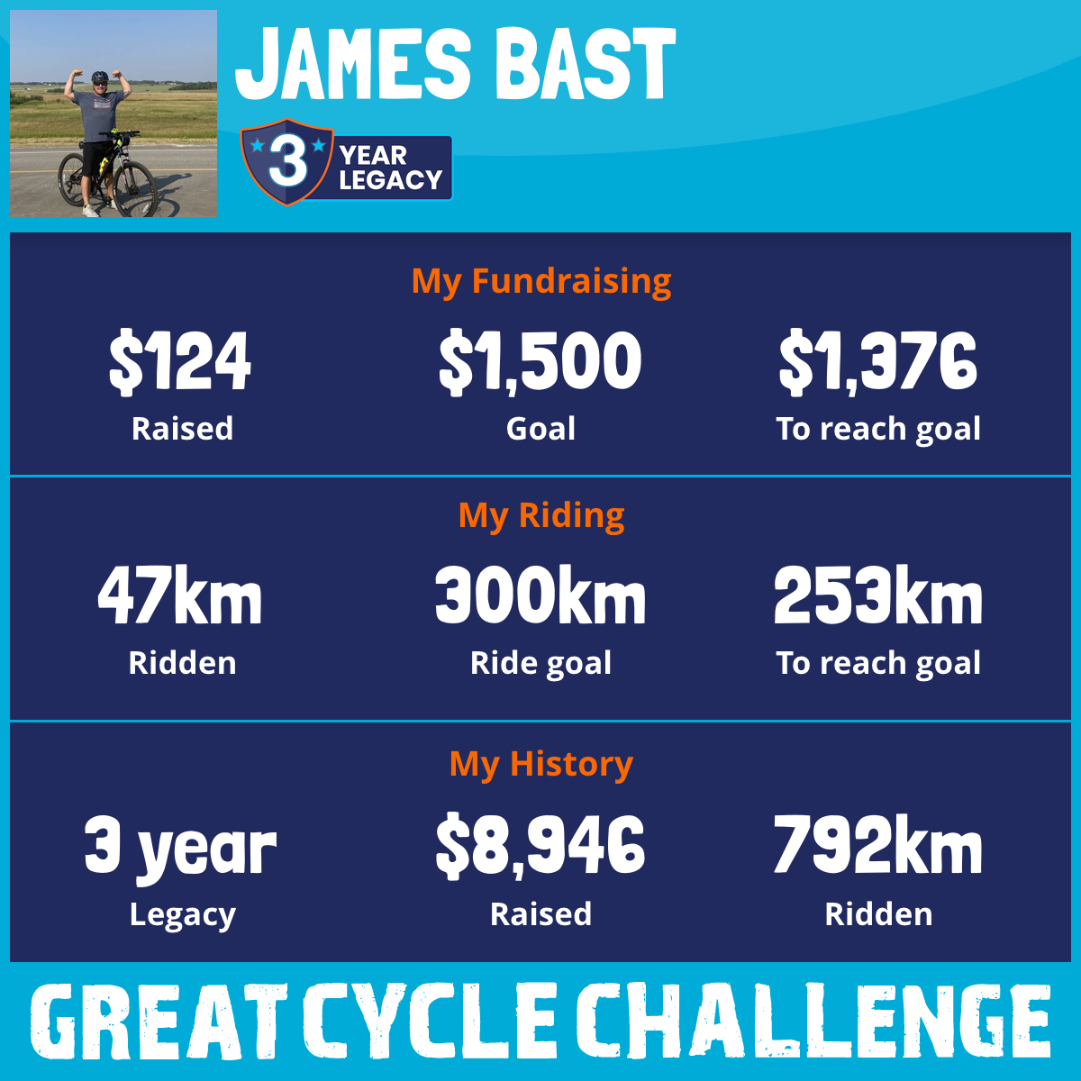 258 km Ridden$891 Raised2024