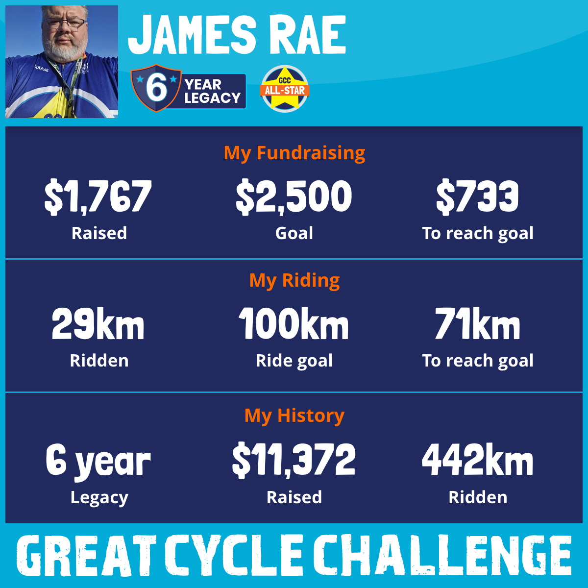 51 km Ridden$2,712 Raised2023