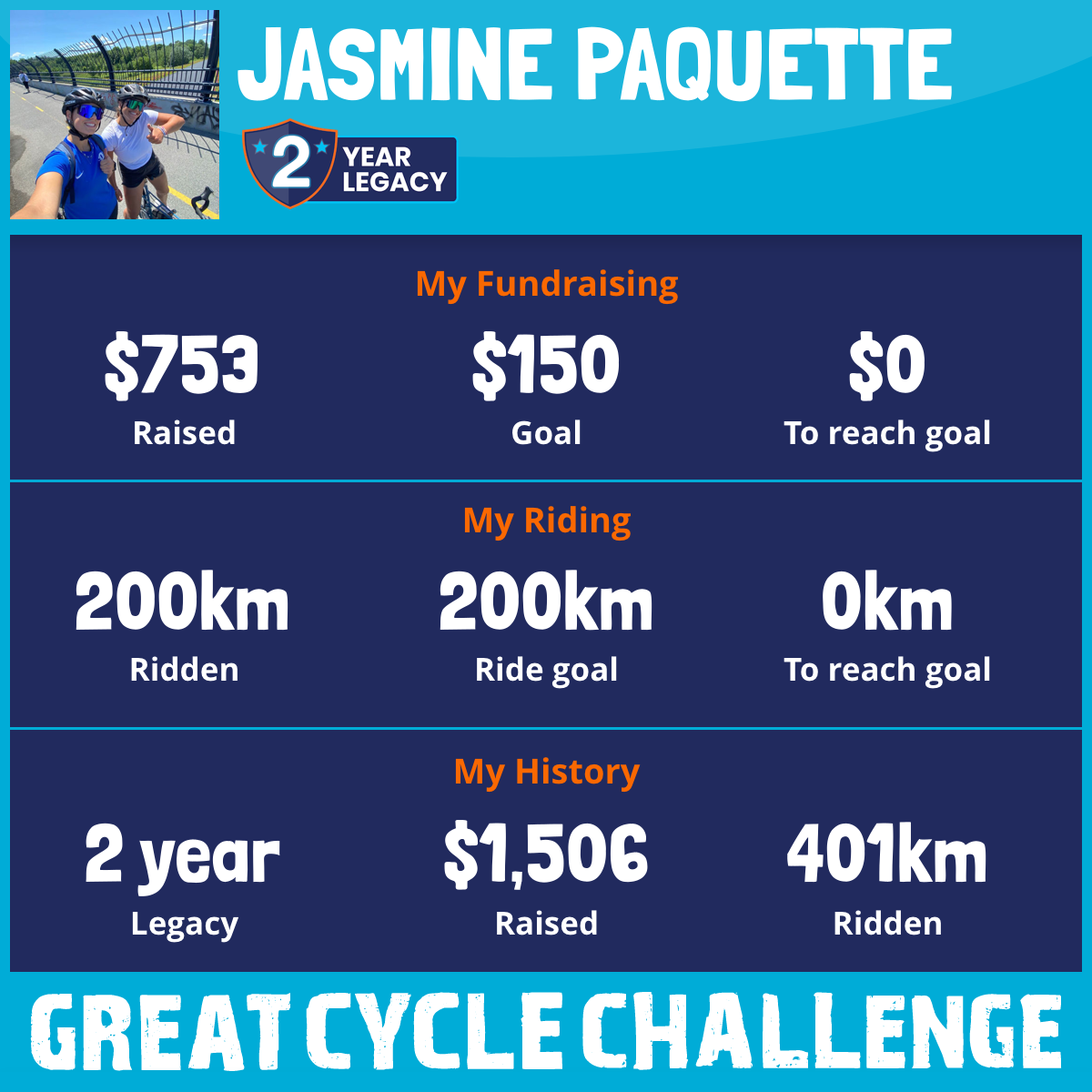 Aude Charré et moi avons décidé de participer au Great Cycle Challenge en août! C'est un défi où des milliers de personnes à travers le pays s'engagent à rouler à vélo pour amasser des fonds essentiels pour la recherche sur le cancer infantile.