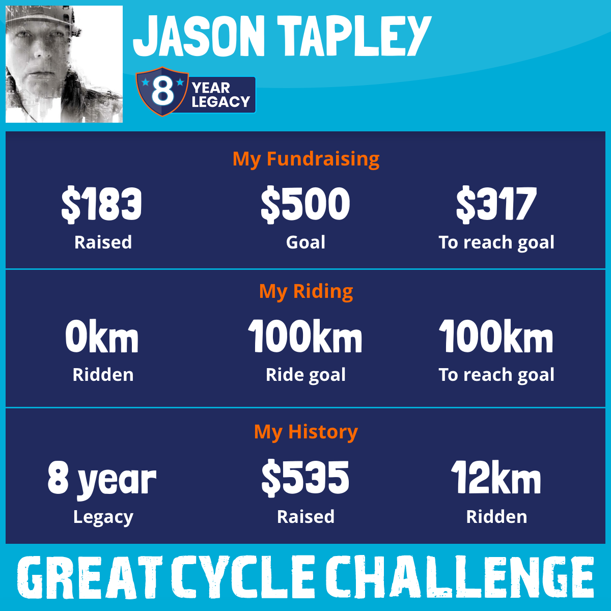I am riding 100 km in memory of Troy Tapley. Please sponsor me and support my challenge to fight kids' cancer and save little lives.