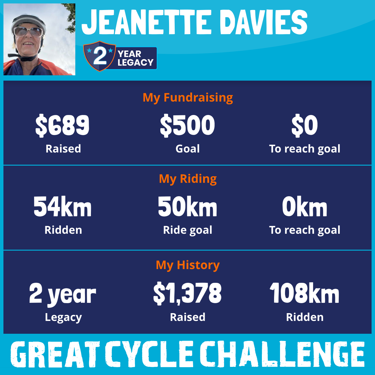 54 km Ridden$689 Raised2026