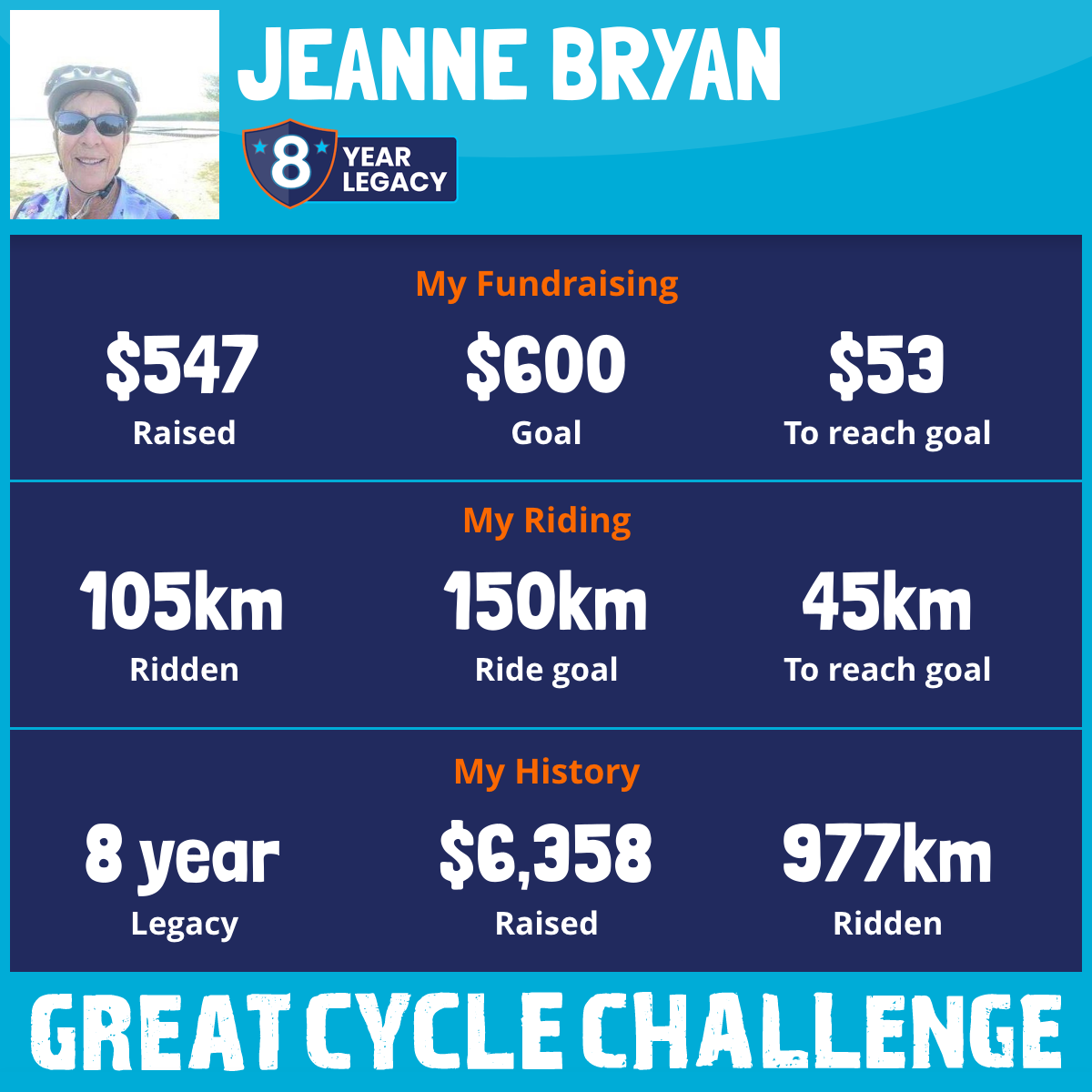 117 km Ridden$1,474 Raised2023