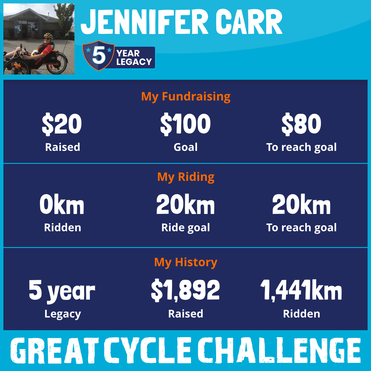 This August, I am taking part in the Great Cycle Challenge to fight kids' cancer! I have committed to riding 300 kms and raising $500.