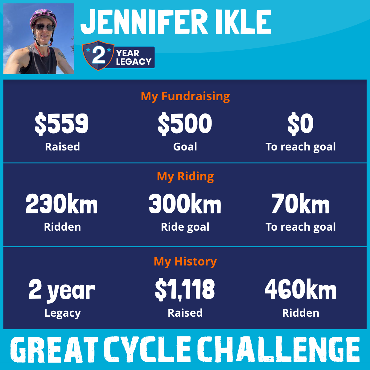 230 km Ridden$559 Raised2025