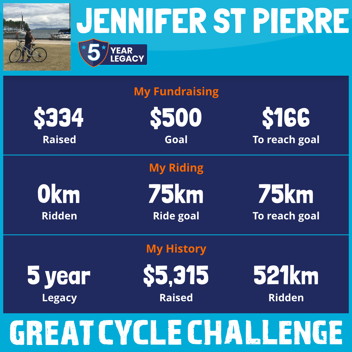 62 km Ridden$1,074 Raised2021