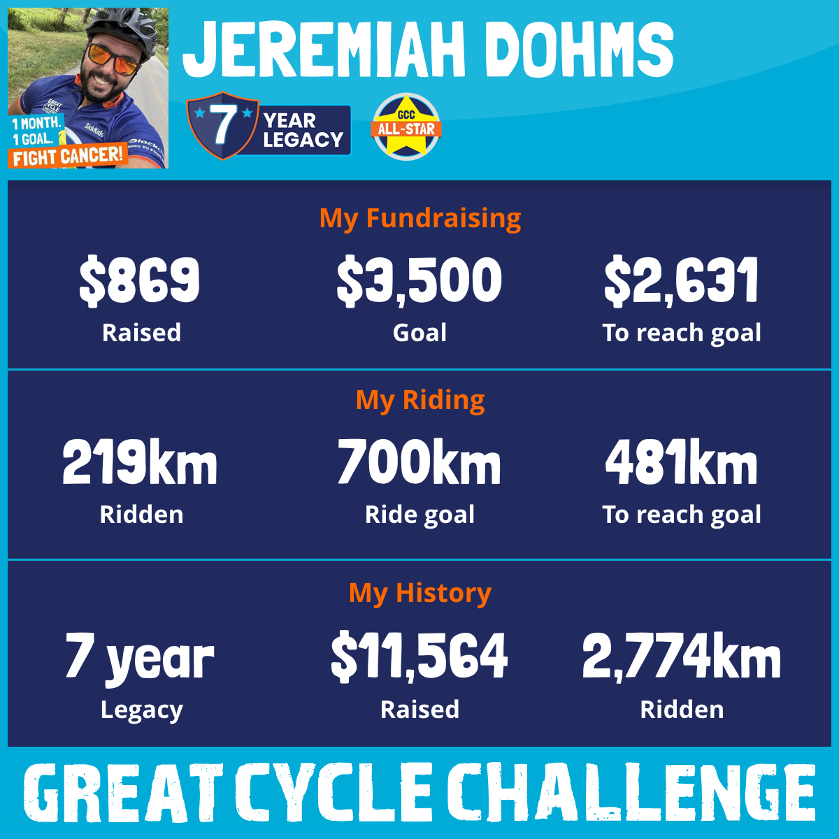 This August, I am taking part in the Great Cycle Challenge to fight kids' cancer for the 7th year!