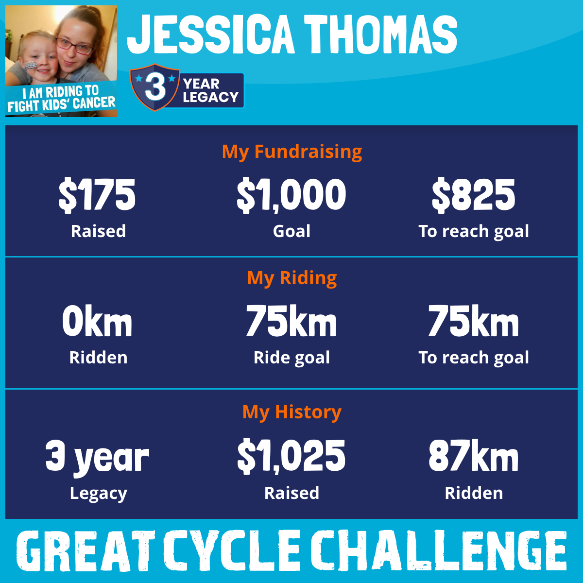 This August, I am taking part in the Great Cycle Challenge to fight kids' cancer!