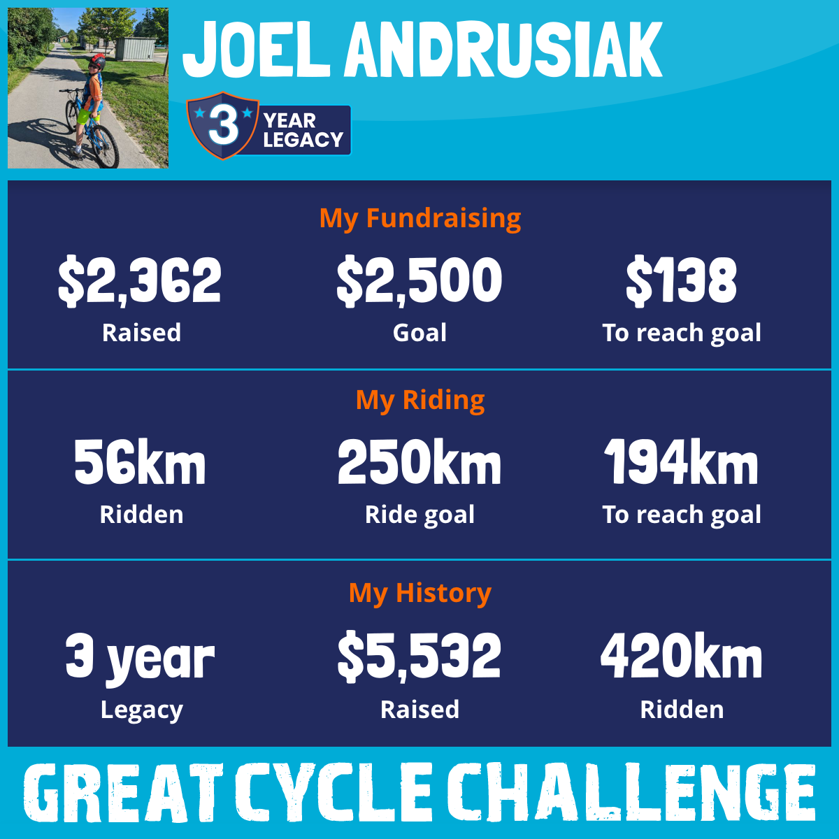 250 km Ridden$2,503 Raised2025