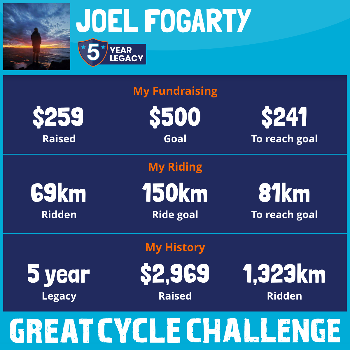 205 km Ridden$605 Raised2023