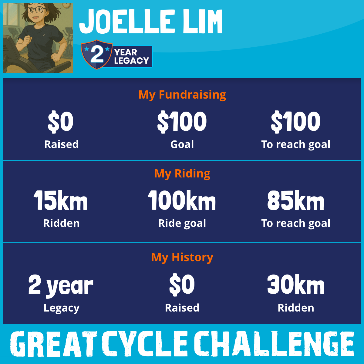 I am riding 100 km for my friend, Bunnie. Please sponsor me and support my challenge to fight kids' cancer and save little lives.