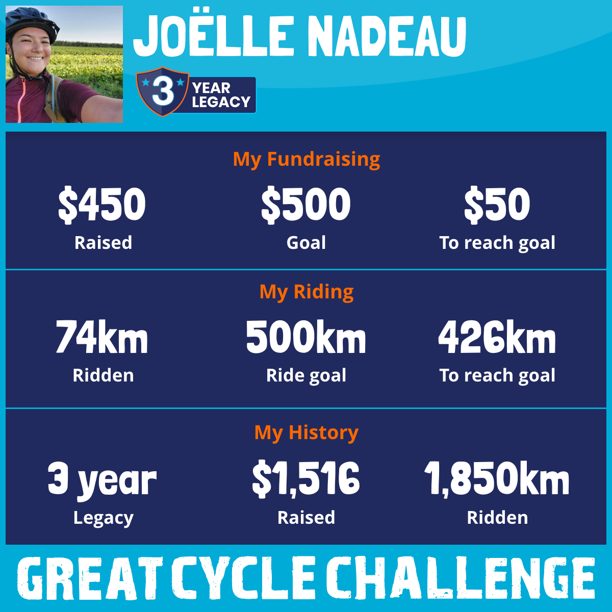 205 km Ridden$450 Raised2026