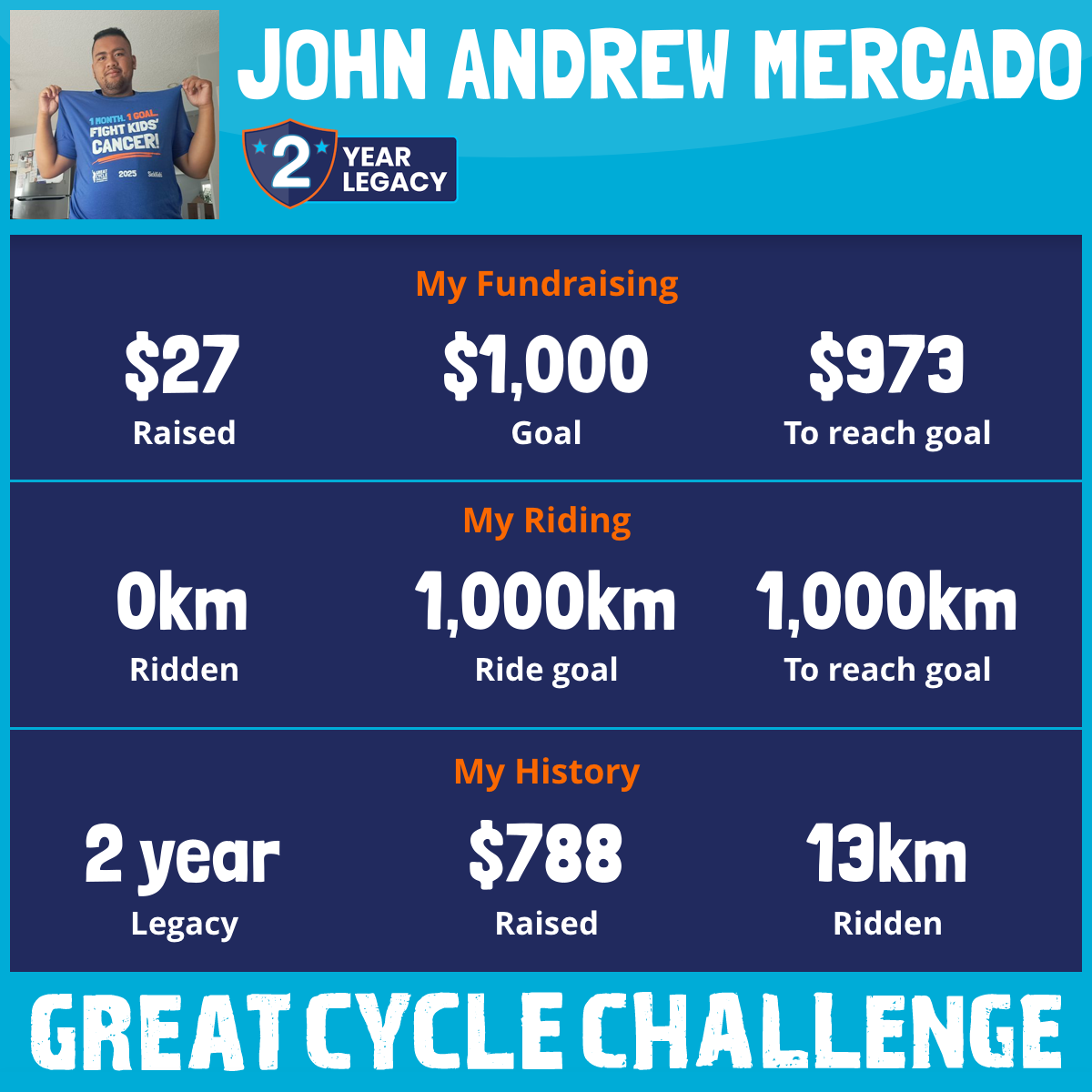 "I'm honored to be part of the Great Cycle Challenge for the second time! Last year was an incredible experience, and I'm excited to ride again for an amazing cause."
