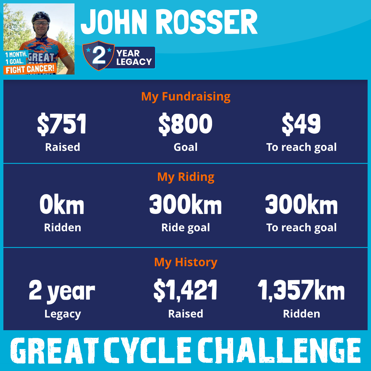 1,357 km Ridden$670 Raised2021