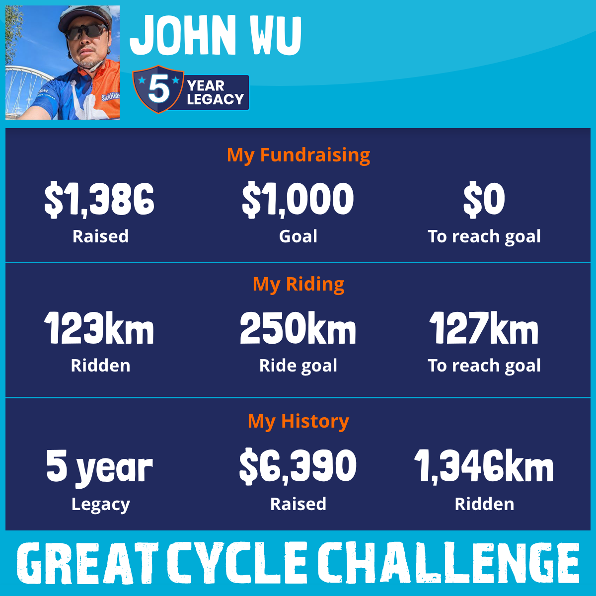 289 km Ridden$1,386 Raised2026