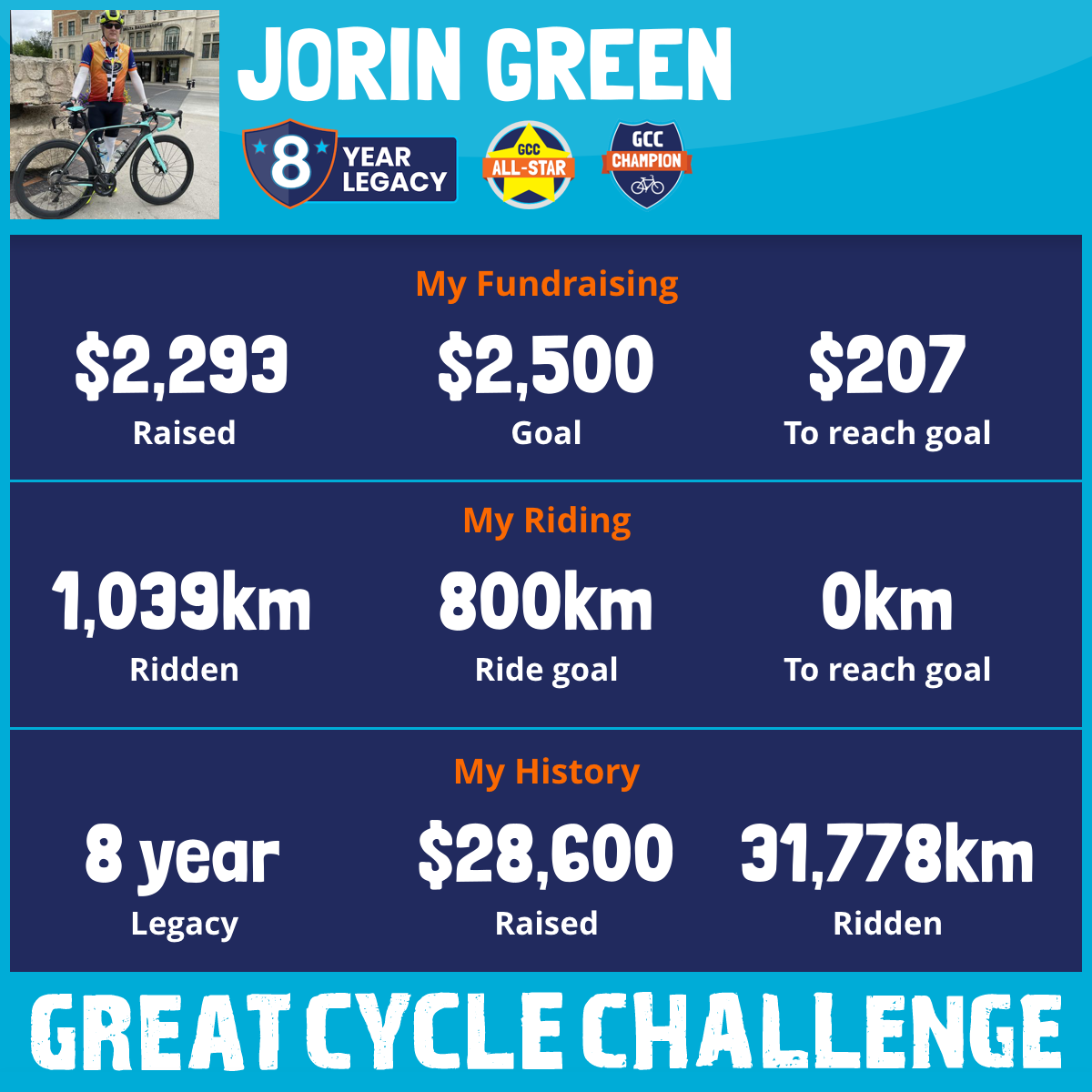 7,554 km Ridden$3,522 Raised2025