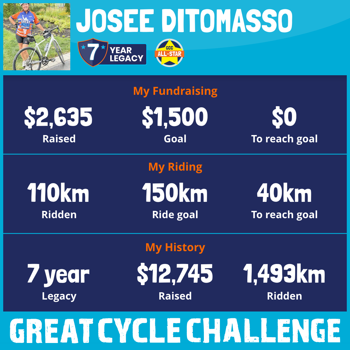 151 km Ridden$2,472 Raised2023