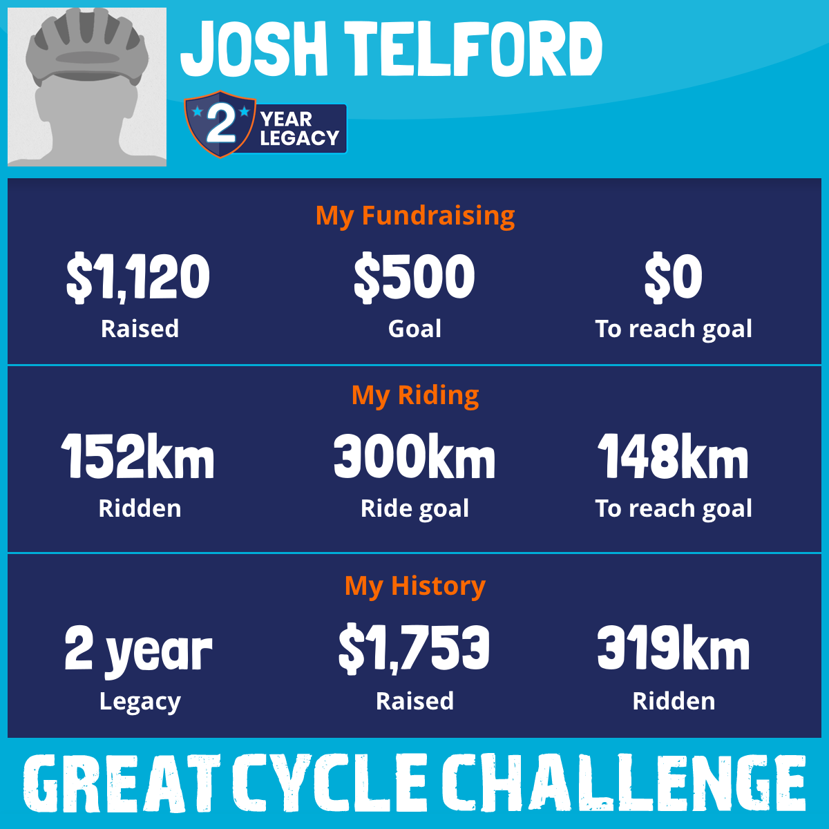 317 km Ridden$1,120 Raised2026